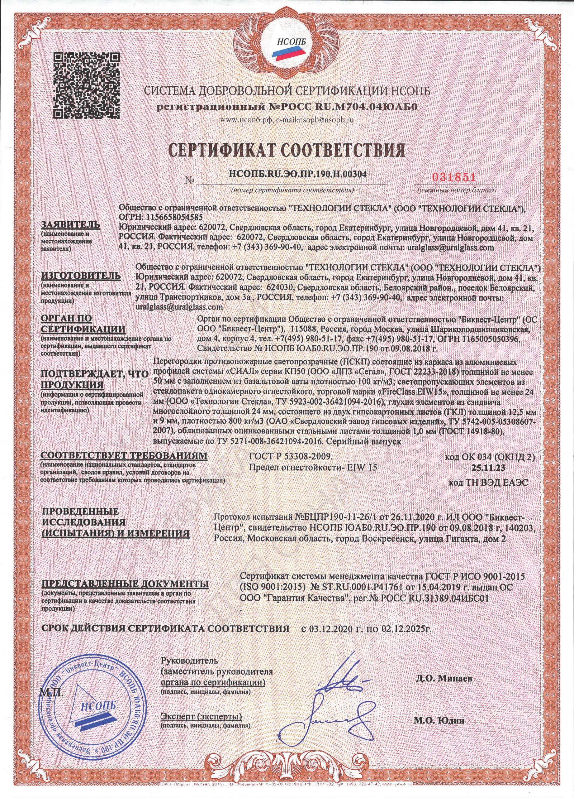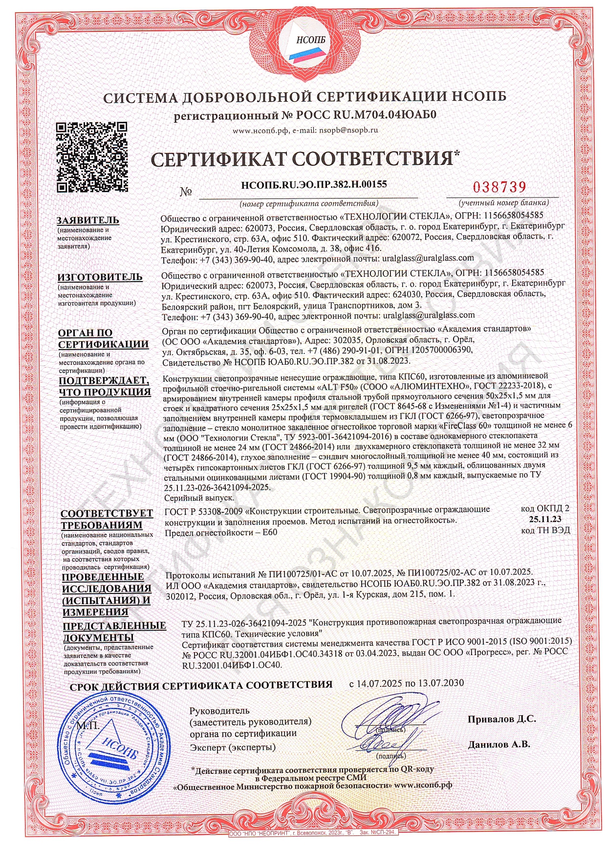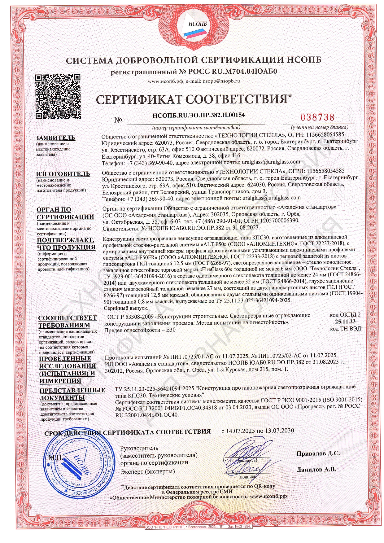 Противопожарное стекло AVENGLASS имеет официальные сертификаты и проходит обязательные испытания на огнестойкость, подтверждая безопасность и качество продукции.